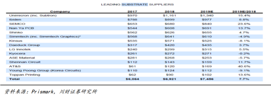 全球前十五大封装基板(IC载板)生厂商