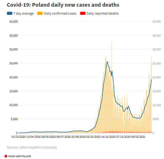 另据外媒报道,近期波兰疫情感染数也在大幅增加,其中约52%的新增病例与英国变种病毒有关。