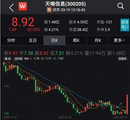 一个值得玩味的现象是,自2020年12月上市公司敲定受让方后,市场似乎对受让方并不买账,天喻信息的股价也开始一路下跌,股价也一度探底至一年来最低。