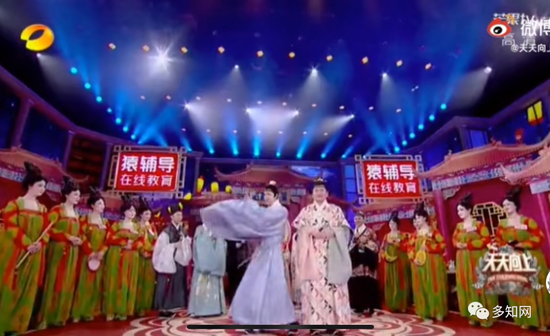 3月21日这期的《天天向上》,从舞台到右下角标识,猿辅导在线教育的Logo均继续存在。
