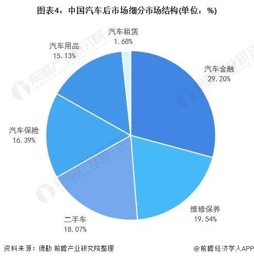 根据德勤对汽车后市场的分类显示,汽车金融市场占比29%,为汽车后市场最大细分市场;汽车保险作为汽车五大后市场之一,占比16%。