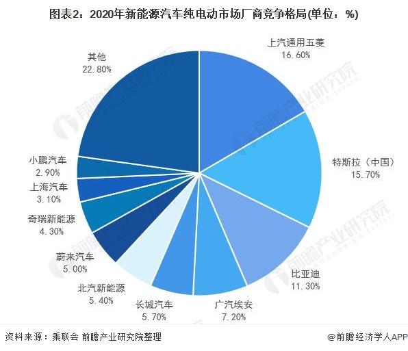 从纯电动市场厂商销量来看,纯电动市场前10厂商排名基本稳定;2020年1-11月,上汽通用五菱销量破12万,超越特斯拉(中国)夺得榜首,市场份额达16.6%;特斯拉市场份额15.7%,排名第二;比亚迪市场份额11.3%,排名第三。