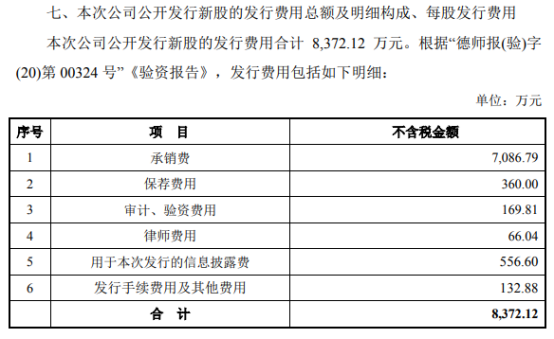 而在发行费用方面,国联证券A股IPO费用合计8372.12万元,平均每股发行费用为0.18元;其中承销费达到了7086.79万元,占比高达84.65%。总体来看,国联证券此次发行募集资金净额实际为19.38亿元。