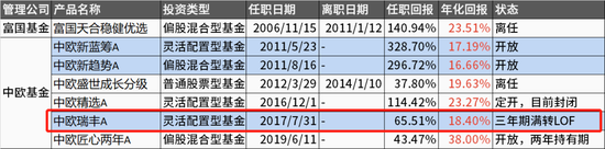 目前周蔚文管理的产品,两只开放式的都还可以申购,8月3日中欧瑞丰三年到期转开放式基金(LOF),场内场外都又多了一个很好的投资品种。将近三年累计回报65%+,年化回报18%+,还是一如既往的稳。