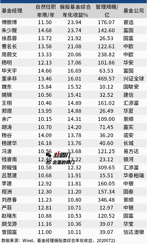 我们之前从产品的角度写过一篇《年终盘点:十年维度下的绝世好基》,今天再从人的角度再写一篇,有哪些值得长期托付的老法师,毕竟当前点位,山高路险、风大雨大。(数据截止日期2020年7月21日)