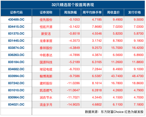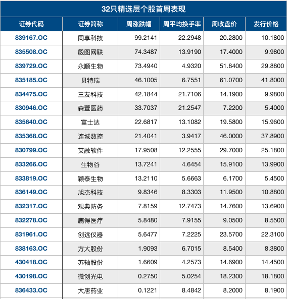 原标题:精选层开板首周惊心动魄:有个股累计涨幅近100%,13只个股仍在“破发”