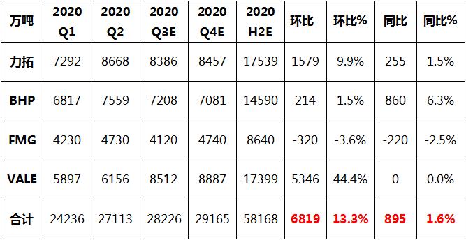 (1)市场最关注的淡水河谷宣称,2020年粉矿目标产量保持不变,仍为3.1-3.3亿吨,但是很有可能全年产量在目标区间的最低值,且淡水河谷认为要达到2020年的目标产量,主要在于以下预期: