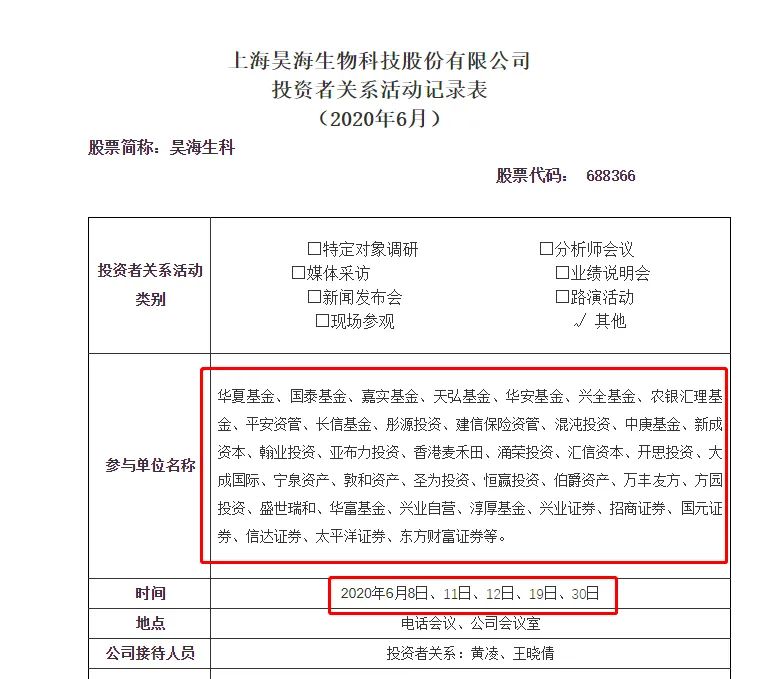 并且在今年6月8日、11日、12日、19日、30日,华夏基金、国泰基金、嘉实基金、天弘基金、华安基金、兴全基金、农银汇理基金、平安资管、长信基金等机构频繁前往昊海生科调研。