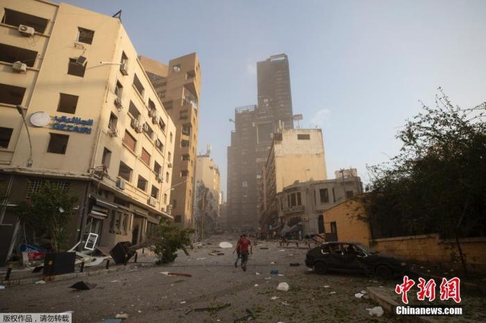 黎巴嫩贝鲁特大爆炸波及半个城区。图为受到爆炸影响的楼已经发生倾斜。