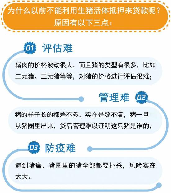 ▲农业银行支持的生猪养殖基地生猪活体抵押贷款曾有“三难”