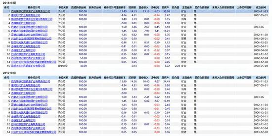兴业矿业2017年、2018年参股或控股公司经营状况
