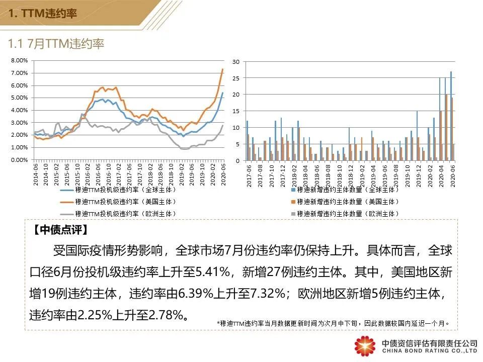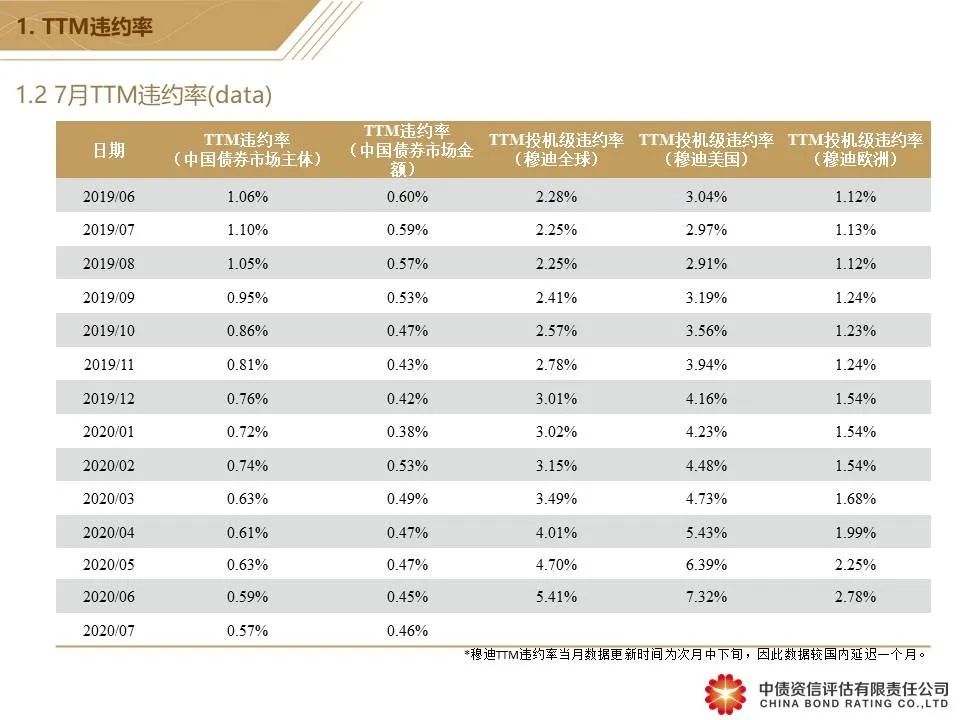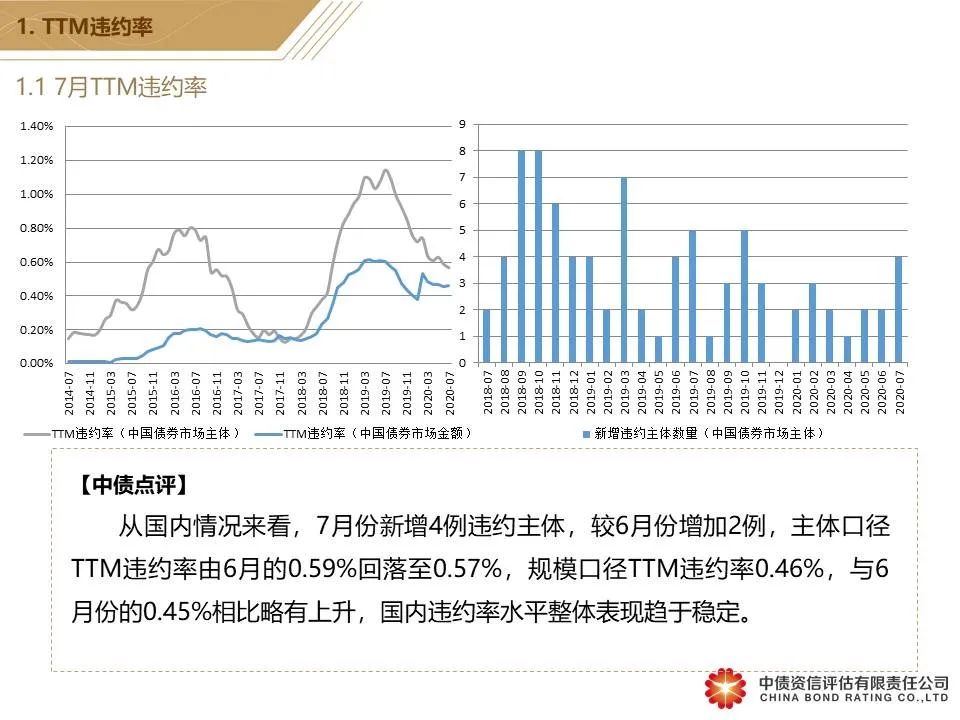 7月国内违约率水平保持下降趋势 市场滚动违约率下降至0.57%