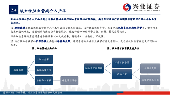◼ 缺血类-取栓器械(取栓支架、抽吸导管)、扩张器械(球囊扩张导管、动脉支架)