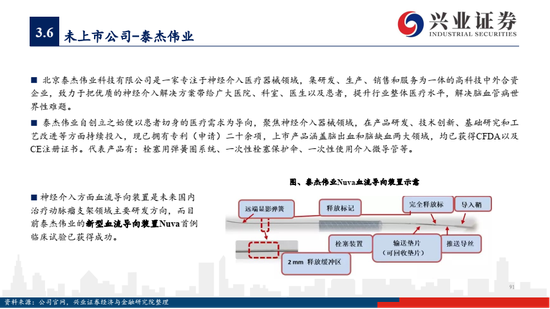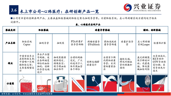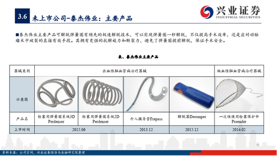 国内神经介入领域未上市企业有维心医疗 (Albuca弹簧圈)、泰杰伟业(Perdenser和Perfiller弹簧圈)、心玮医疗 (Captor取栓支架在研) 等,作为新锐企业有丰富的在研产品梯队,在弹簧圈、取栓支架等核心器械上位居国产前列。
