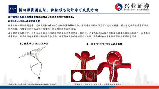 3)独特形态的支架对复杂的动脉瘤及分支形态有针对性的效果,如强生的Pulserider支架,给特殊支架研发提供了思路;