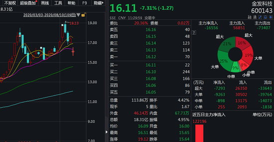 同时,监管函还要求公司核实并说明,是否于合同签订前进行了充分必要的尽职调查,是否对合同对方的信用情况和履约能力进行了有效核实,以及至今未披露交易对方的主要考虑和原因。截至午盘,金发科技股价大跌7.31%,报16.11元。