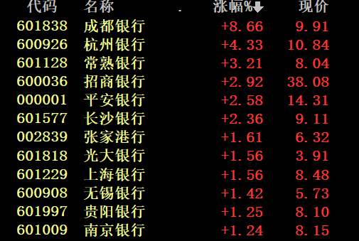 今日上午大盘表现强势,背后主要推手是金融板块。在银行股中,成都银行上涨8.66%。