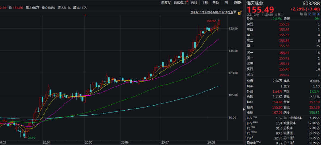 此外,食品饮料、白酒等消费品种表现也较为突出。今日上午,三全食品、盐津铺子、中炬高新、双汇发展、海天味业等个股批量创出历史新高。值得注意的是,海天味业今日上午上涨2.29%,总市值突破5000亿元,年内累计涨幅达75.32%。