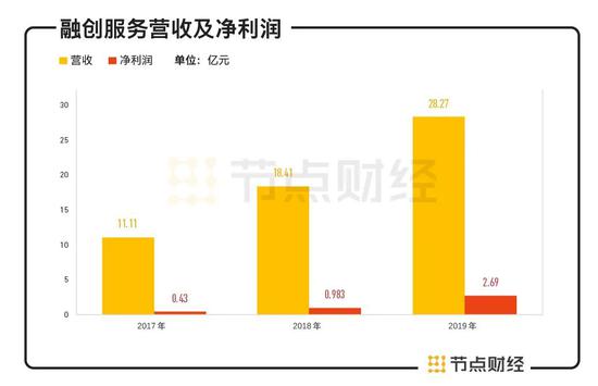 业绩上,据招股书显示,2017年—2019年,融创服务分别实现营业收入为11.11亿元、18.41亿元及28.27亿元,年复合增长率59.5%;对应的净利润分别4300万元、9830万元及2.69亿元,年复合增长率150.7%。
