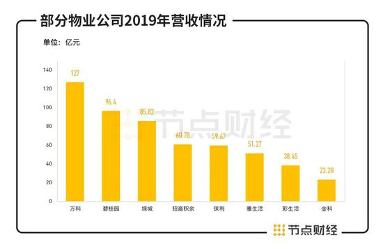 营收规模上,融创服务也逊色于头部企业。根据公开资料,2019年万科物业的营收已经达到127亿元,碧桂园服务、绿城服务有96.4亿元、85.82亿元。另外,招商积余、雅生活、保利物业去年营收同样都超过了50亿元,融创服务28.27亿元的体量大体处于行业中游。