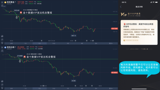 VIP机会警报的作用不光是获利,还可能是规避风险,避免损失。昨晚金十数据VIP及时发出利空明显信号警报,预见了行情。近期金银遭连续打压,看多需要谨慎!下载金十数据手机APP即刻开通VIP。