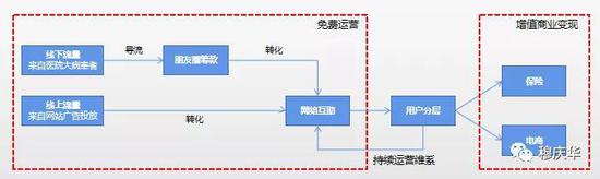 对于灯火互助来说,母体平台百度流量+广告变现的商业模式下,商业价值诞生路径是: