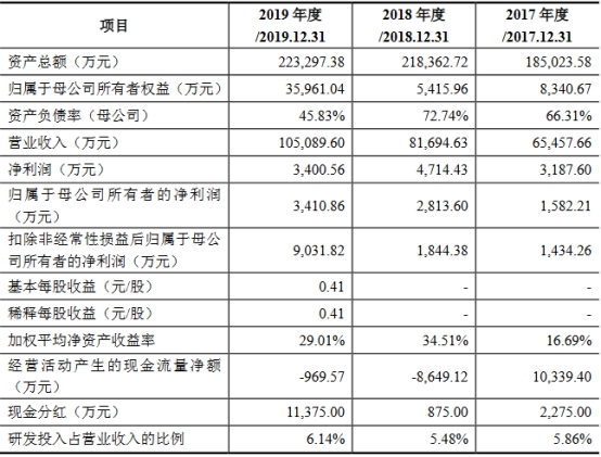 2017年至2019年,豪森股份实现营业收入分别为6.55亿元、8.17亿元和10.51亿元;实现净利润分别为3187.60万元、4714.43万元和3400.56万元;实现归属于母公司所有者的净利润分别为1582.21万元、2813.60万元和3410.86万元。
