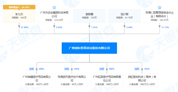 广州润虹医药科技股份有限公司股权穿透图(来源:天眼查)