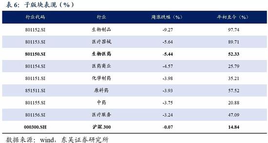 5.2 医药子板块追踪:本周生物制品子板块跌幅9.27%居各板块第一