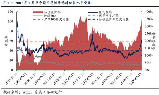 截至2020年8月14日,医药指数市盈率为58.03,环比本周下降3.24个单位,高于历史均值17.06个单位;沪深300指数市盈率为14.15,医药指数的估值溢价率为310.1%,环比下降24.9%,高于历史均值116.7个百分点。