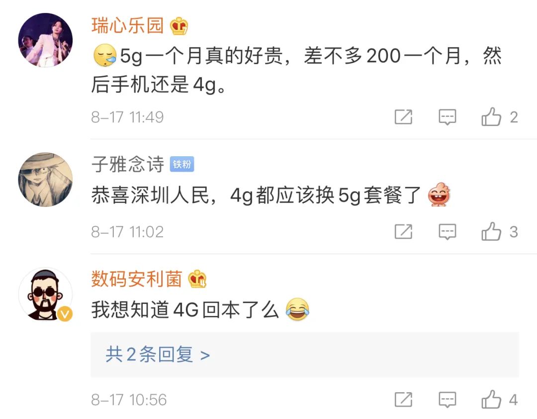 消息一出,网友们又嗨了:有欢呼深圳人民正式迈入5G时代的,也有吐槽4G变卡卡的。