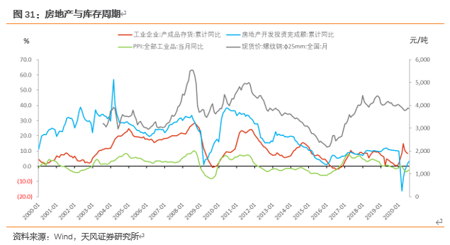 回顾过去三轮稳增长,基本都能看出稳投资通常需要基建+地产共同发力,当前房地产政策再度收紧,只有基建的情况下其对经济拉动的幅度和持续性有待观察。我国的库存周期基本是房地产周期,疫情之后库存周期可能延续去年回升态势,但房地产缺位的情况下本轮库存周期会弱于前期。