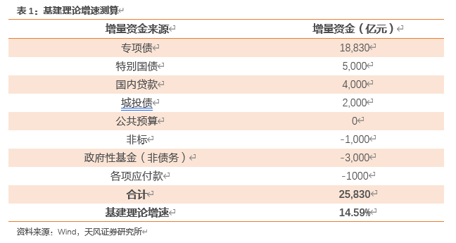 专项债、特别国债之外的财政支出。年内基建规模至少在18万亿以上,而专项债、特别国债用于基建的部分总规模仅约3万亿,占比并不高。2018年基建预算内资金2.4万亿,而专项债用于基建的部分约4000亿元,这意味着预算内资金中大部分并非来自债务收入。因而,基建也不能只看专项债、特别国债的增量资金,财政特别是政府性基金的存量支出也需要关注。