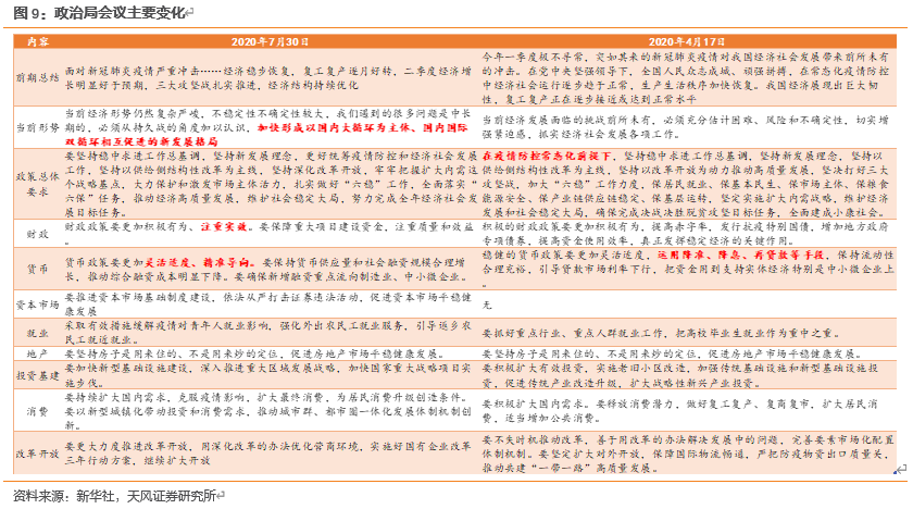 政策注重实效,同时严控地方债务。7月30日政治局会议继续提到“财政政策要更加积极有为”,且进一步指出要“注重实效”、“要保障重大项目建设资金,注重质量和效益”。这事实上也与7月29日财政部发布的《关于加快地方政府专项债券发行使用有关工作的通知》(以下简称《通知》)的要求相吻合。财政继续发力的同时,对地方债务继续从严管理,6月8日全国财政厅(局)长座谈会要求“强化违法违规举债责任追究,不能因为应对疫情就不重视债务风险,不能因为财政困难就违规举债制造新的风险,绝不为解决短期问题而留下后遗症,牢牢守住不发生系统性风险的底线。”可以看到,政策虽然有力度,但还是有坚守,从这个角度而言基建投资可能也很难超越此前几轮稳增长时期。