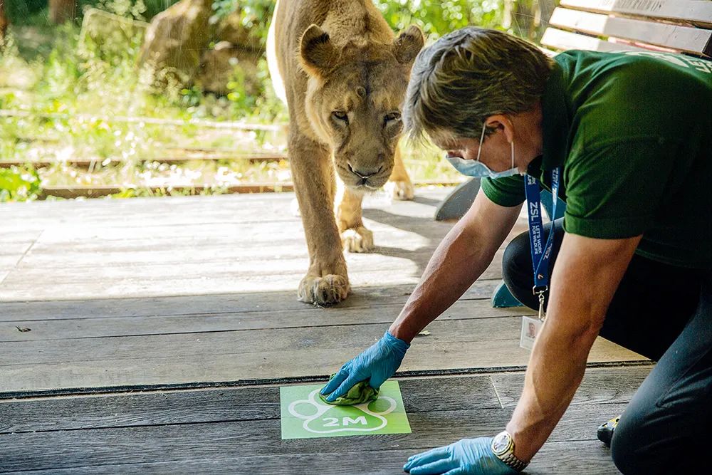 6月初,伦敦动物园的工作人员在张贴标识,提醒保持社交距离,为重新开园做准备。图/受访者提供