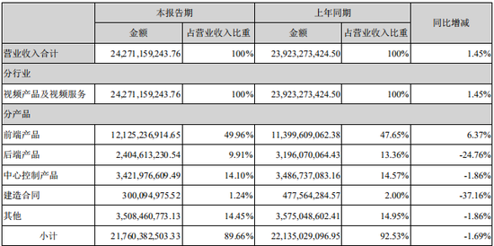 根据2020年半年报显示,海康威视的前端产品收入为121.25亿元,占比为49.96%,较上一年提高2个百分点。如果单就绝对值计算的话,这块产品的收入增速达到了6.37%。