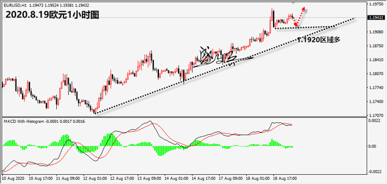 欧元策略:1.1920区域多,止损1.1870,目标1.200,1.2080