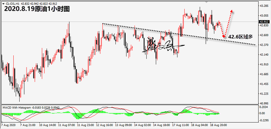 原油策略:42.6区域多,止损42.00,目标43.6,45.00