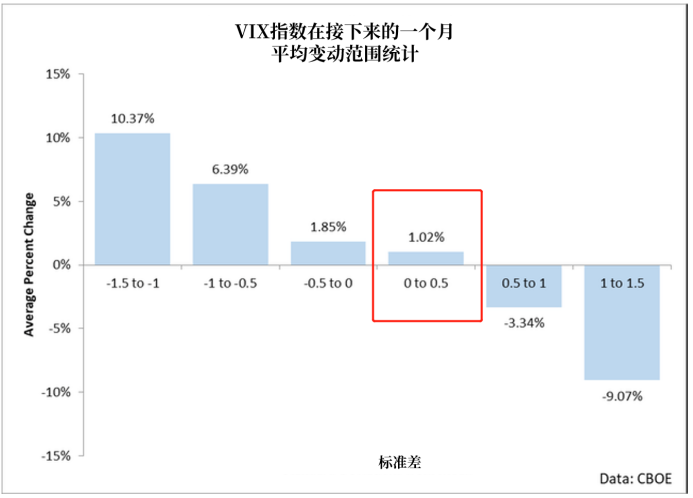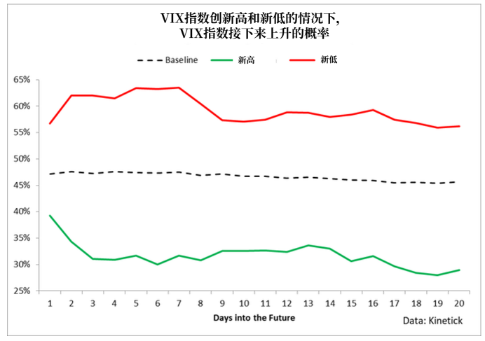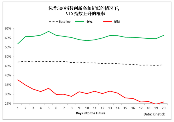标普500指数达到新高表明,VIX指数接下来上涨的概率约为60%;