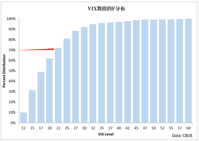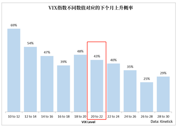 VIX指数本身跌至新低表明,VIX指数接下来上涨的概率约为60%;