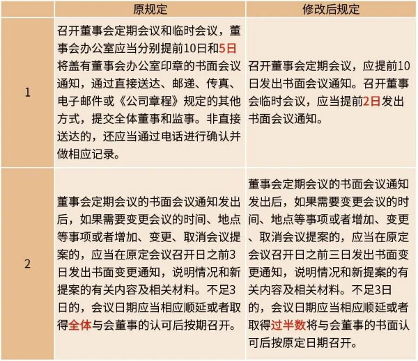 且上述修改也大幅度降低了临时董事会召开的门槛,《董事会议事规则》重点修改内容如下: