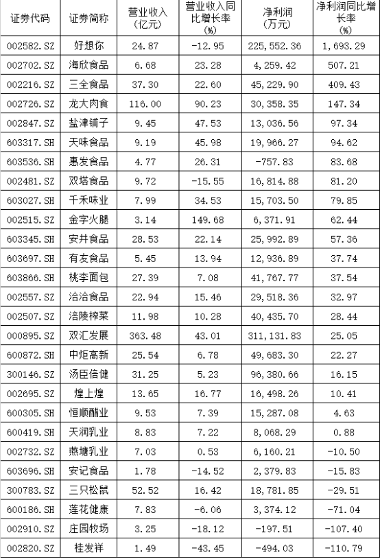 已披露食品加工行业上市公司半年报数据(截至8月20日):