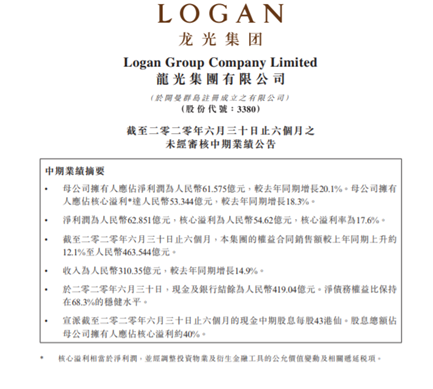 龙光集团:上半年归母净利润61.6亿元 同比增长20.1%