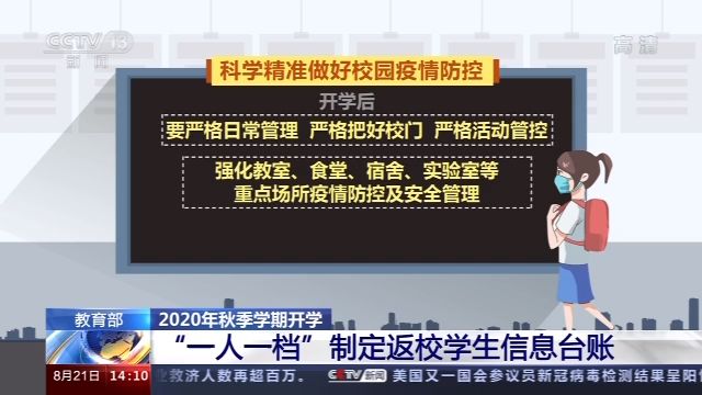教育部近日印发《关于做好2020年秋季学期教育教学和疫情防控工作的通知》,要求各地各校全面恢复教育教学秩序,同时科学精准做好校园疫情防控。开学前,应“一人一档”制定返校学生信息台账,确保学生返校全程可追溯。开学后,继续执行“日报告”“零报告”制度。