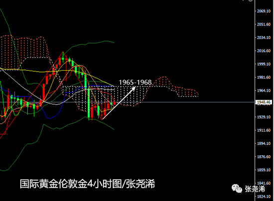 4小时级别;金价则处于回升阶段,MACD绿色动能柱持续缩减,KDJ也金叉向上运行。暗示反弹仍有空间,上方目标可看至1965-1968美元附近。下方关注1943美元初步支撑,进一步关注1938美元支撑看涨。