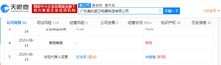 此外,广东美的厨卫电器制造有限公司近日也发生工商变更,方洪波退出该公司法定代表人,由徐旻锋接任。
