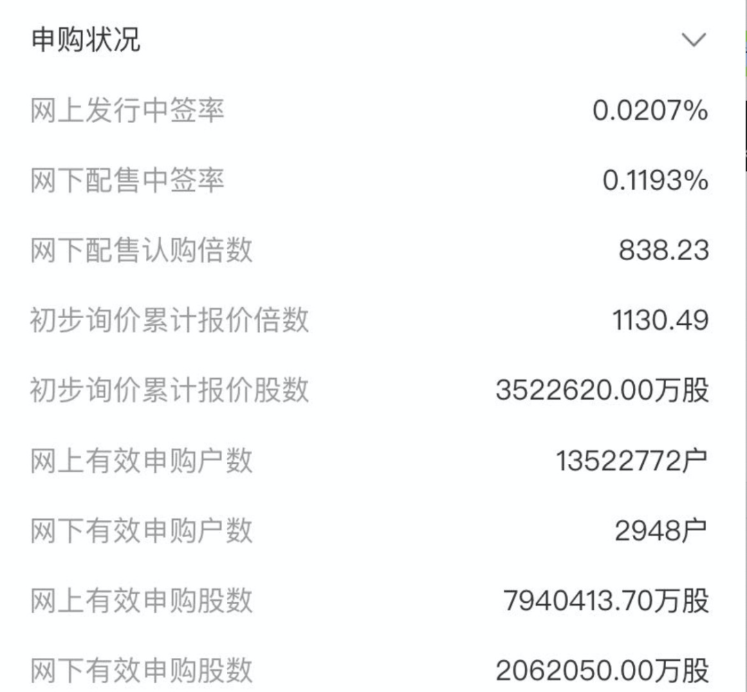 公开资料显示,康泰医学本次发行4100万股,发行价格为10.16元,发行市盈率为59.74倍,网上发行中签率为0.0207%。