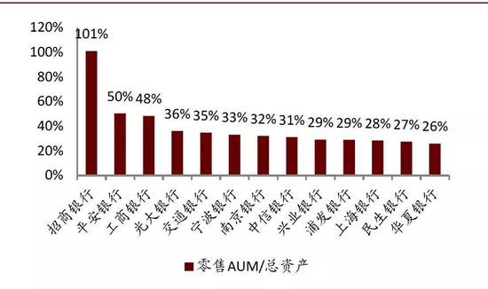 图表: 建议关注中报AUM数据,2019年招行零售AUM/总资产最高,平安增速超出同业