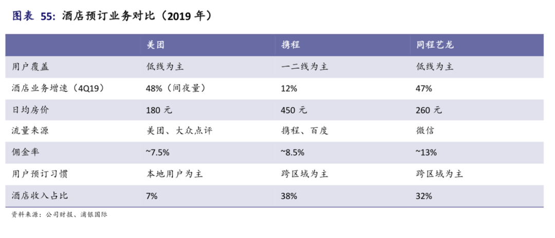 首先,外卖业务兼具流量和盈利使命,特点是高频、流量大、毛利低。对于低频的酒店业务来说,外卖可以为其输送流量。