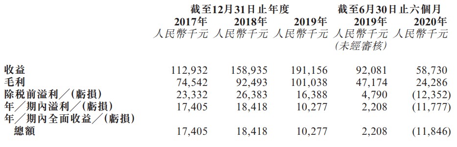 截至2020年6月30日止六个月,公司收益为5873万元(人民币,下同),同比下滑36.22%;毛利2428.6万元,同比下滑48.52%;亏损1184.6万元,去年同期为溢利220.8万元。